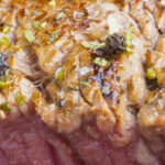 Meat cooked on a vertical rotisserie -